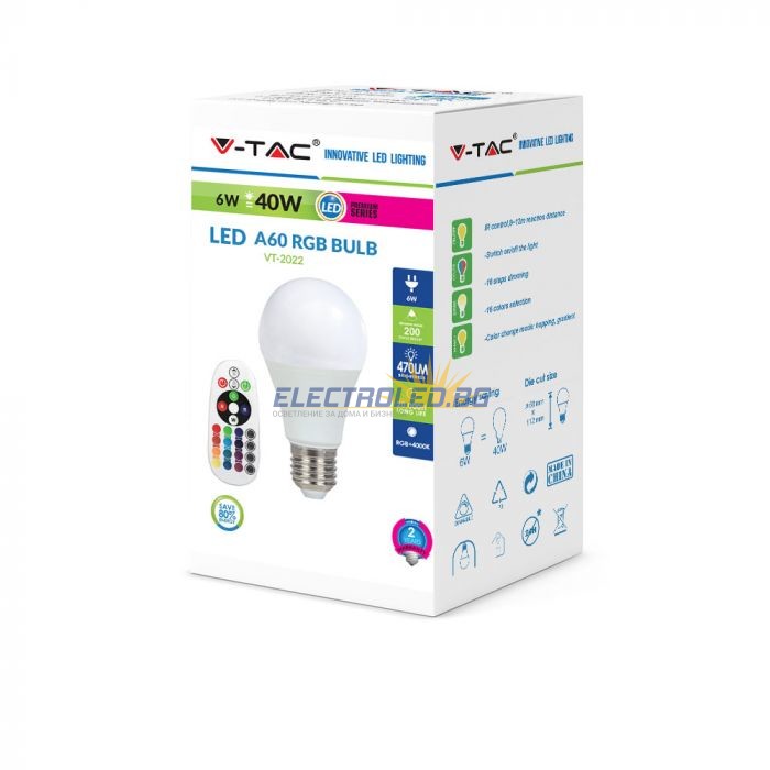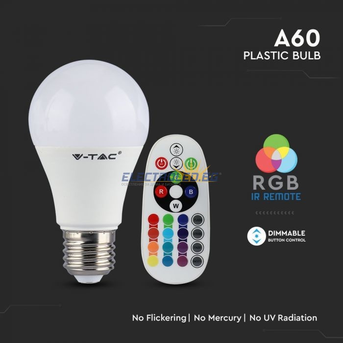LED Bulb - 6W E27 A60 RGB With Remote Control 6400K