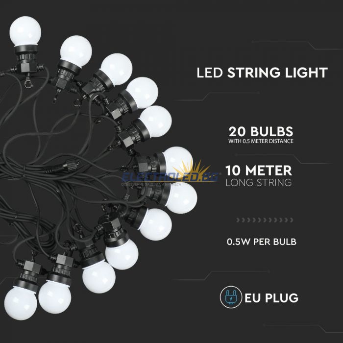 0.5W LED String Light 10M With 20 Bulbs EU 3000K